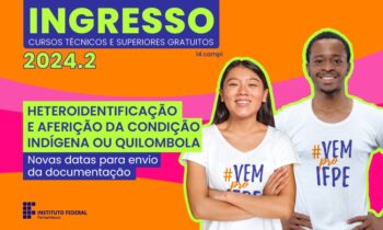 O Instituo Federal de Pernambuco – IFPE divulgou nesta sexta-feira (16) mudanças no cronograma da etapa da Aferição das condições autodeclaradas (Preto, pardo, indígena ou quilombola) no Processo de Ingresso 2024.2 para todos os seus campi.