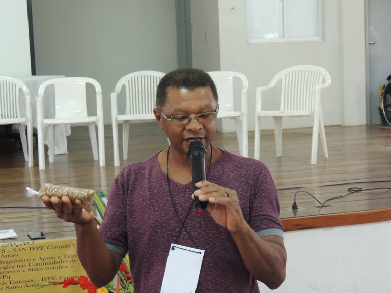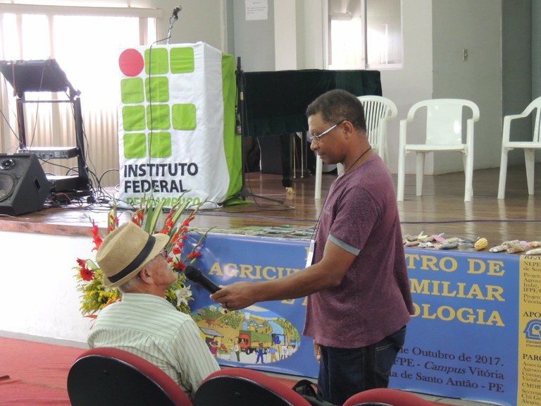 Os agricultores e as agricultoras foram recebidos no auditório do prédio central com lanche e apresentação cultural da banda Forró Terra Preta, formada por estudantes e servidores do Campus. Os participantes vieram de comunidades rurais dos municípios de Vitória de Santo Antão, Chã Grande, Pombos, Glória do Goitá, Chã de Alegria e Lagoa de Itaenga. Na mesa de abertura, coordenadores(as) de projetos, gestores do Campus, representantes dos estudantes, dos agricultores, de comunidades e secretários municipais de agricultura.