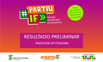O IFPE Campus Vitória de Santo Antão divulgou, nesta segunda-feira (26), o resultado preliminar da 6ª chamada da seleção de estudantes para o Programa PartiuIF. A publicação do resultado final está prevista para terça-feira, dia 27 de maio.