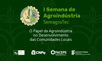 Estão abertas as inscrições para a I Semana da Agroindústria (SemagroTec) do IFPE Campus Vitória de Santo Antão. O evento será realizado nos dias 3, 4 e 5 de dezembro, com atividades gratuitas e abertas a estudantes, professores/as e à comunidade externa. Para se inscrever, basta clicar aqui.