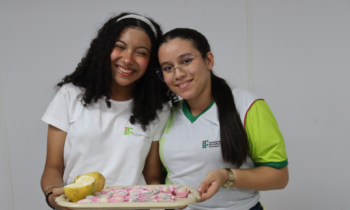 Mas como associar aula de informática e produtos da agroindústria? As turmas mostraram que as duas áreas têm tudo a ver. As estudantes Emilly Bianca e Emmanoelly Souza, do 1º E, apresentaram o projeto do bem-casado de Maracujá. Elas contaram que buscaram dar um novo sabor ao tradicional doce brasileiro, utilizando o maracujá, uma fruta tropical, nativa do Brasil e mais acessível, que ajuda a reduzir a pressão arterial e é rica em vitaminas. “Para desenvolver e executar o projeto, nós precisamos pensar no objetivo geral, nas demandas, nos ingredientes, no produto, e na apresentação, e no empreendedorismo”, explicaram.